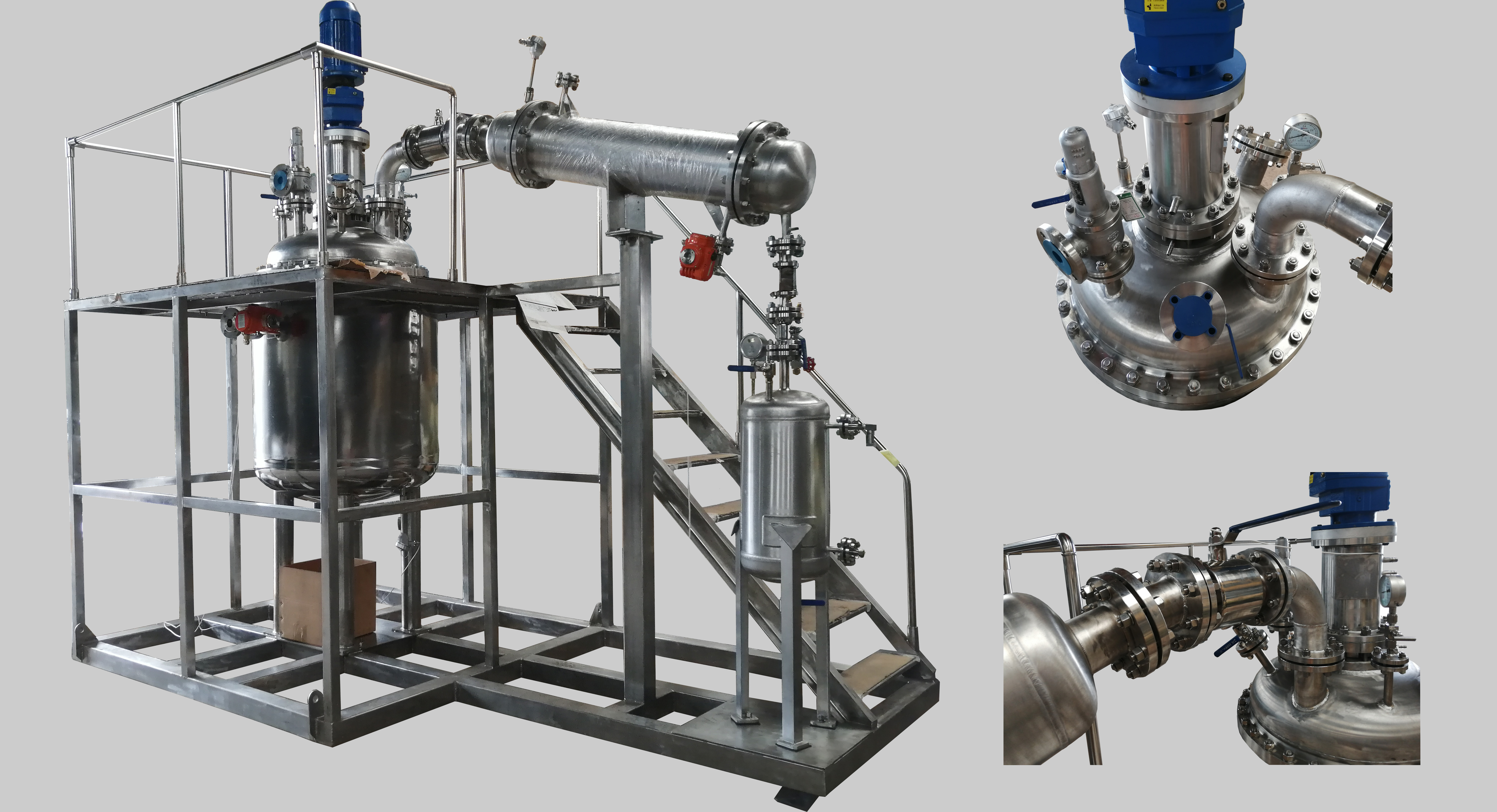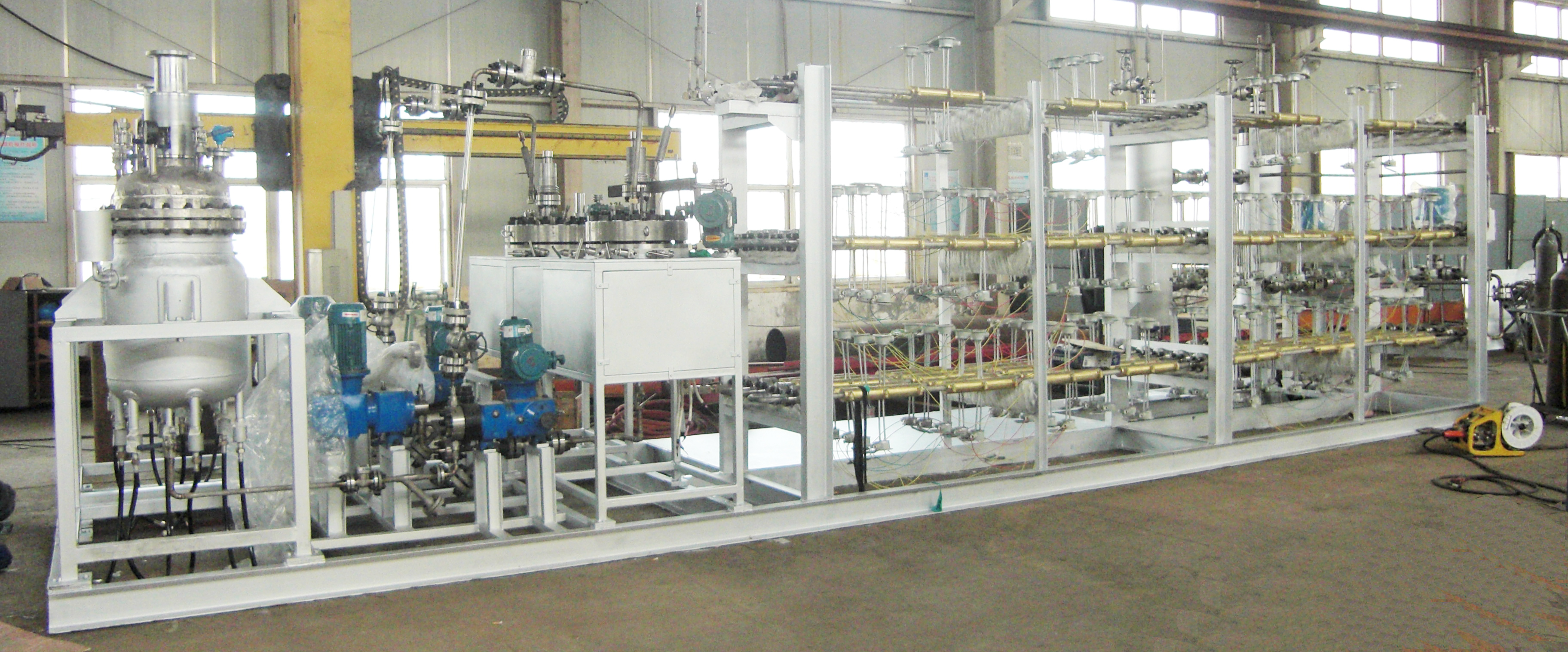 加氫反應分為吸熱反應和放熱反應,有些加氫反應在反應過程中會釋放大量的熱能。為了生產(chǎn)安全,并及時降低釜內(nèi)溫度,有些工藝要求釜內(nèi)配大面積的冷卻盤管。此時單層冷卻盤管無法滿足工藝要求,需要雙層或更多層盤管有效及時降溫。正威機械生產(chǎn)的6層盤管內(nèi)配吸氫攪拌槳,加…